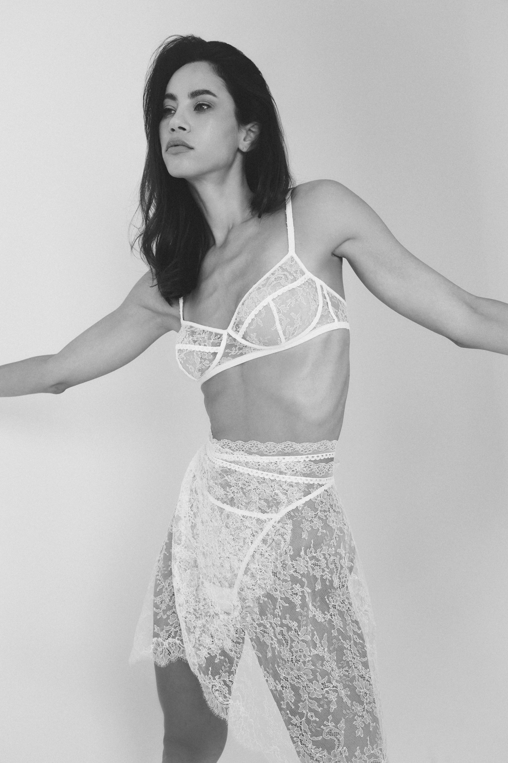 A subtle layer of seduction, l'Harmonie Skirt, crafted with FSC certified French lace, is a delicate envelope of poetry.